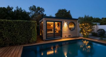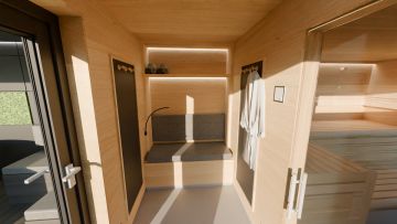 Erleben Sie Entspannung pur in Ihrer eigenen Außensauna mit hochwertiger Ausstattung und edlem Design.